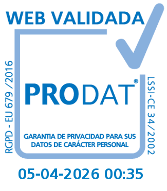 PRODAT, habiendo recabado la información necesaria y realizadas las comprobaciones pertinentes, acredita que la página web clientes.prodat.es titularidad de Petroquímica Valenciana, S.L. cumple con los requisitos establecidos en la Ley 34/2002, de 11 de julio, de servicios de la sociedad de la información y de comercio electrónico (LSSI-CE), así como con las obligaciones de información al usuario en la recogida de sus datos personales contempladas en la normativa vigente en materia de protección de datos de carácter personal, Reglamento (UE) 2016/679 del Parlamento Europeo y del Consejo, de 27 de abril de 2016, relativo a la protección de las personas físicas en lo que respecta al tratamiento de datos personales y a la libre circulación de estos datos.